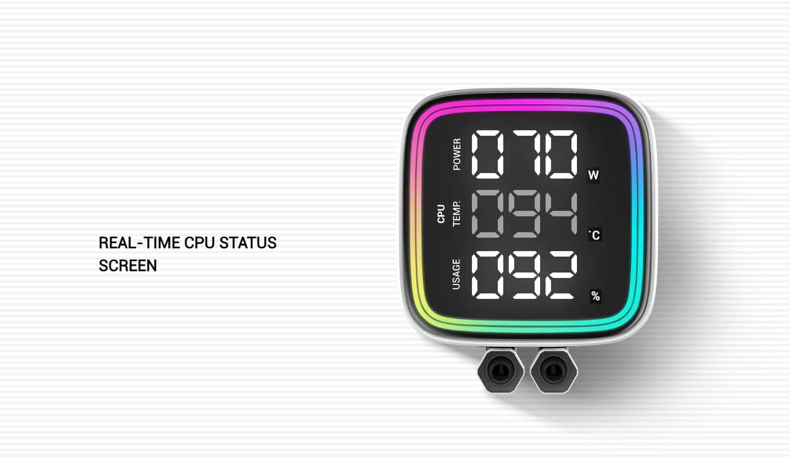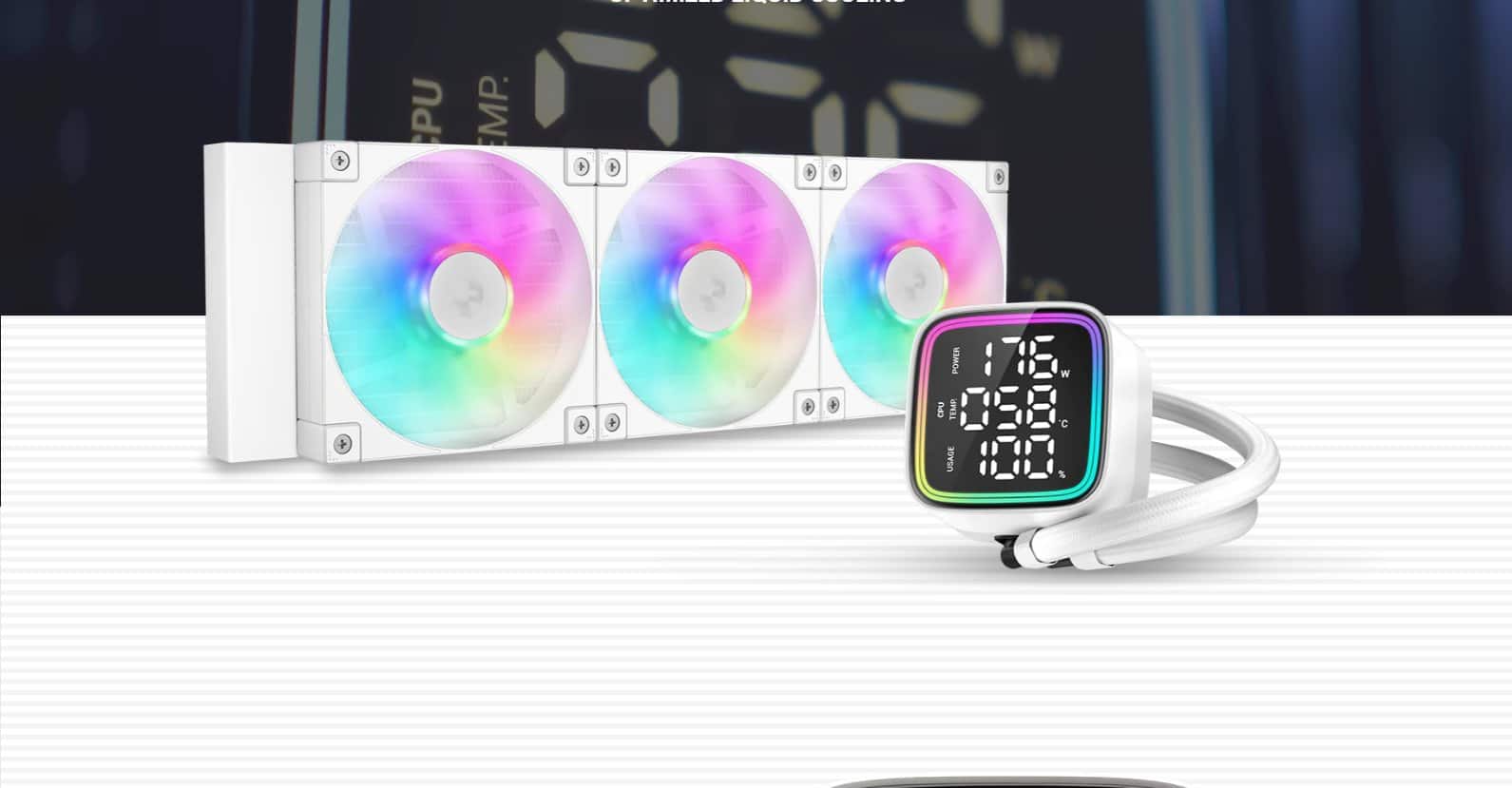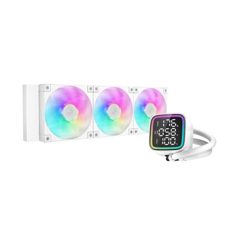 The large glass status screen, gradient ARGB halos, and a satin black finish add the finishing touch in Deepcool LD360 White 360mm