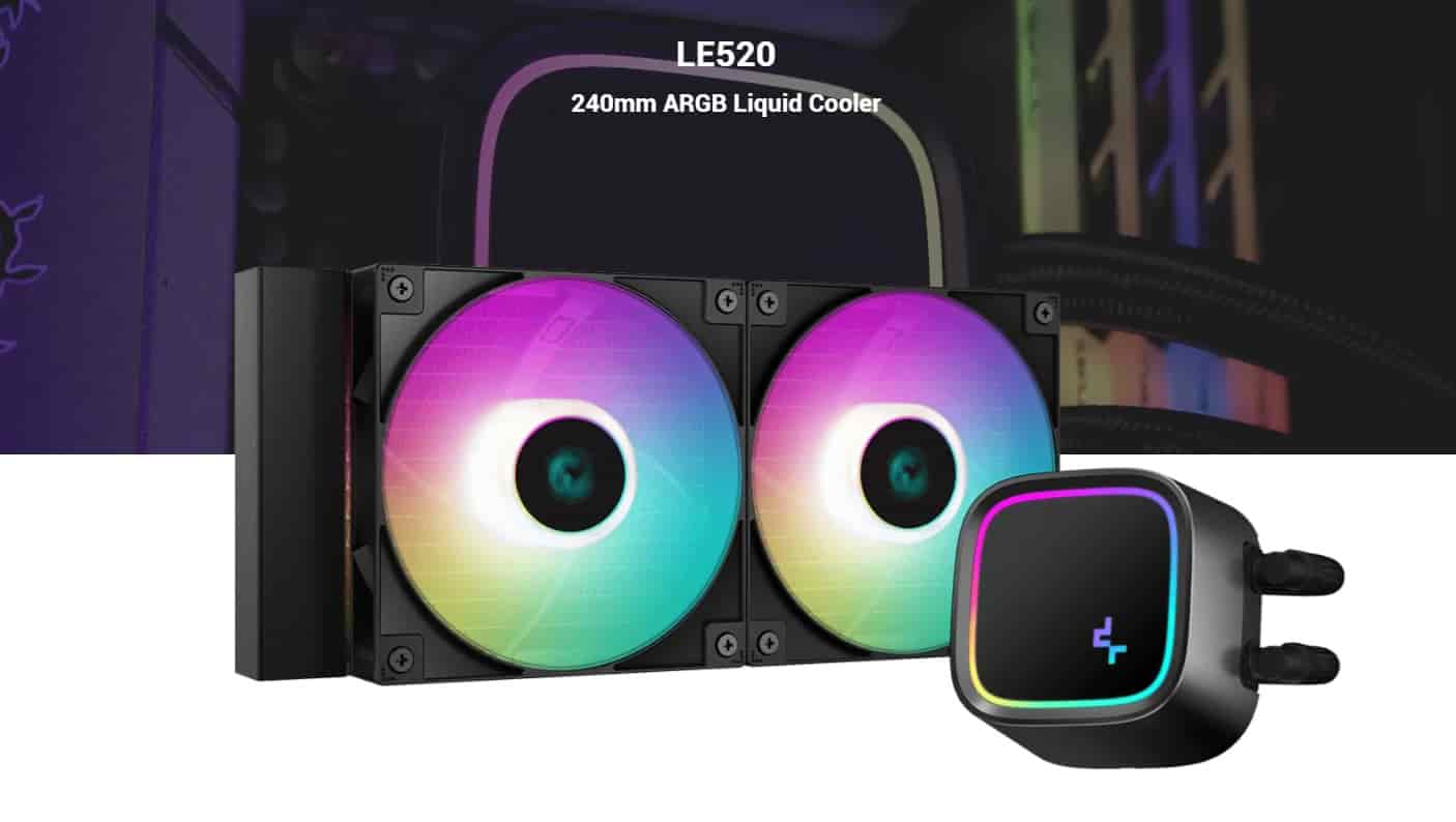 The DeepCool LE520 240mm ARGB Black CPU Liquid Cooler features a new series pump with rounded corners, a square shape, bright ARGB, and additional durability. The low pump height of 52mm provides excellent compatibility for various ITX cases.