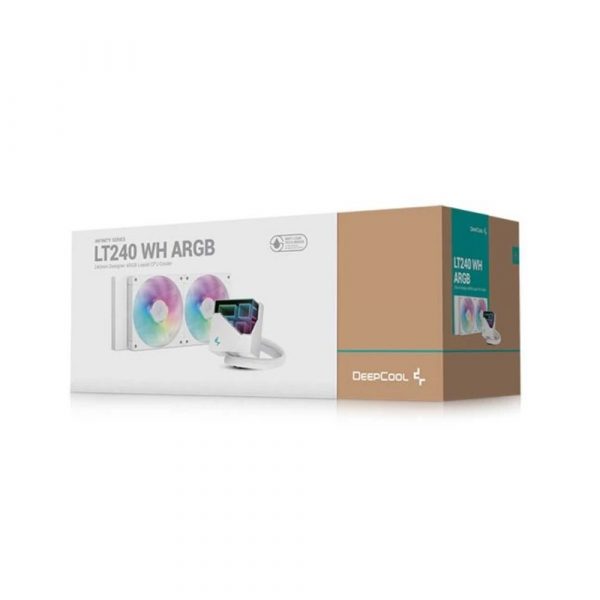 - The Deepcool LT240 White ARGB is a high-performance liquid CPU cooler that has been upgraded to DeepCool’s chart-topping 5th generation pump and provides strong heat dissipation power with a 240mm radiator, two precision-tuned FD12 ARGB fans, and a multidimensional infinity mirror top cap, all presented in a clean design.