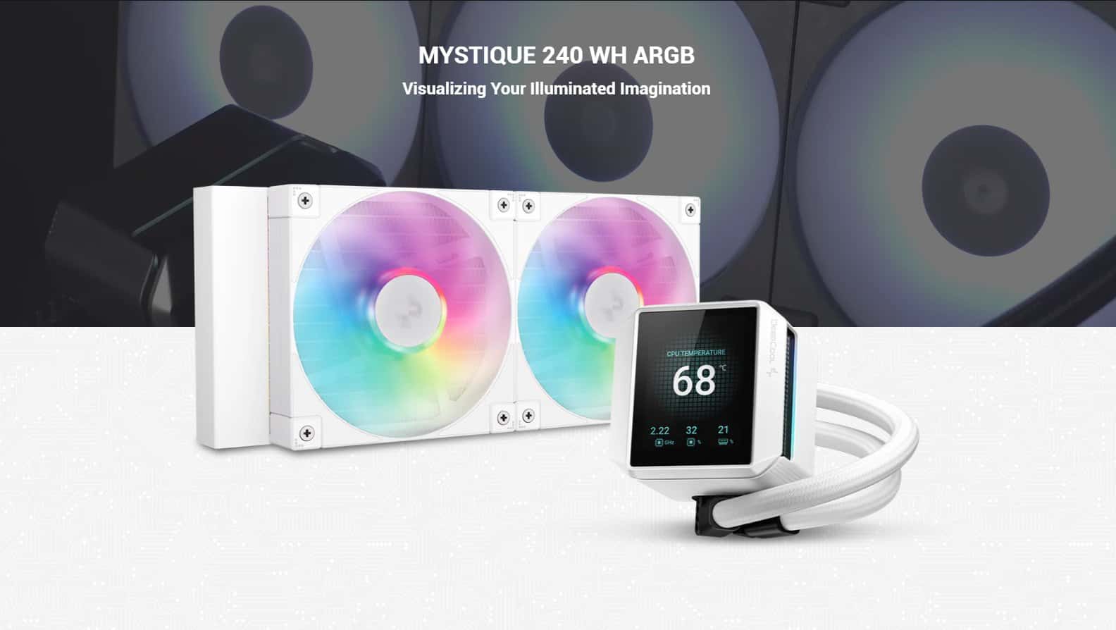 - The Deepcool Mystique 240 White ARGB is DeepCool’s latest addition to the flagship line of liquid coolers with highly sought-after customizable LCD screens. Bring your creative style to life with customized images and animated gifs on the brilliant 2.8″ TFT LCD screen! The MYSTIQUE ARGB line has been outfitted with a new set of vivid ARGB fans.