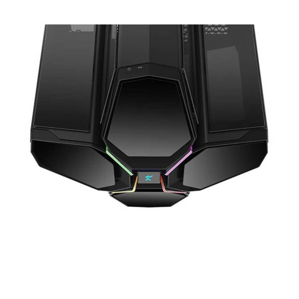 Four RGB LED light strips are integrated into the front panel that lead up to the center power button offering a fancy futuristic way to power on your system.