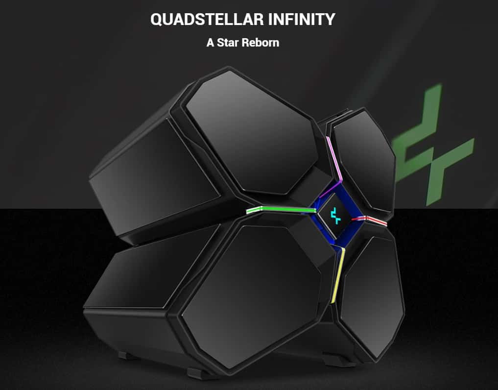 Back by popular demand the DeepCool QUADSTELLAR INFINITY returns from orbit with its timeless design and character. The unique compartmentalized structure offers a practical and distinct aesthetic that is out of this world.