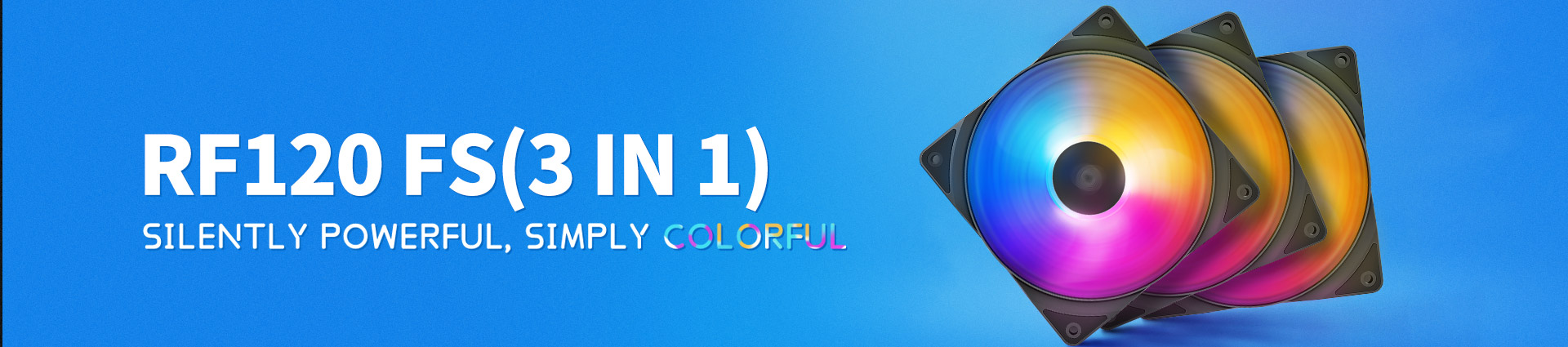 Deepcool RF120 FS has 6 built-in high brightness LEDs in each fan, with purple/blue/orange pre-programmed lighting combination. Simply plug in the power, synchronize with included fan hub, and enjoy the mesmerizing visual experience.