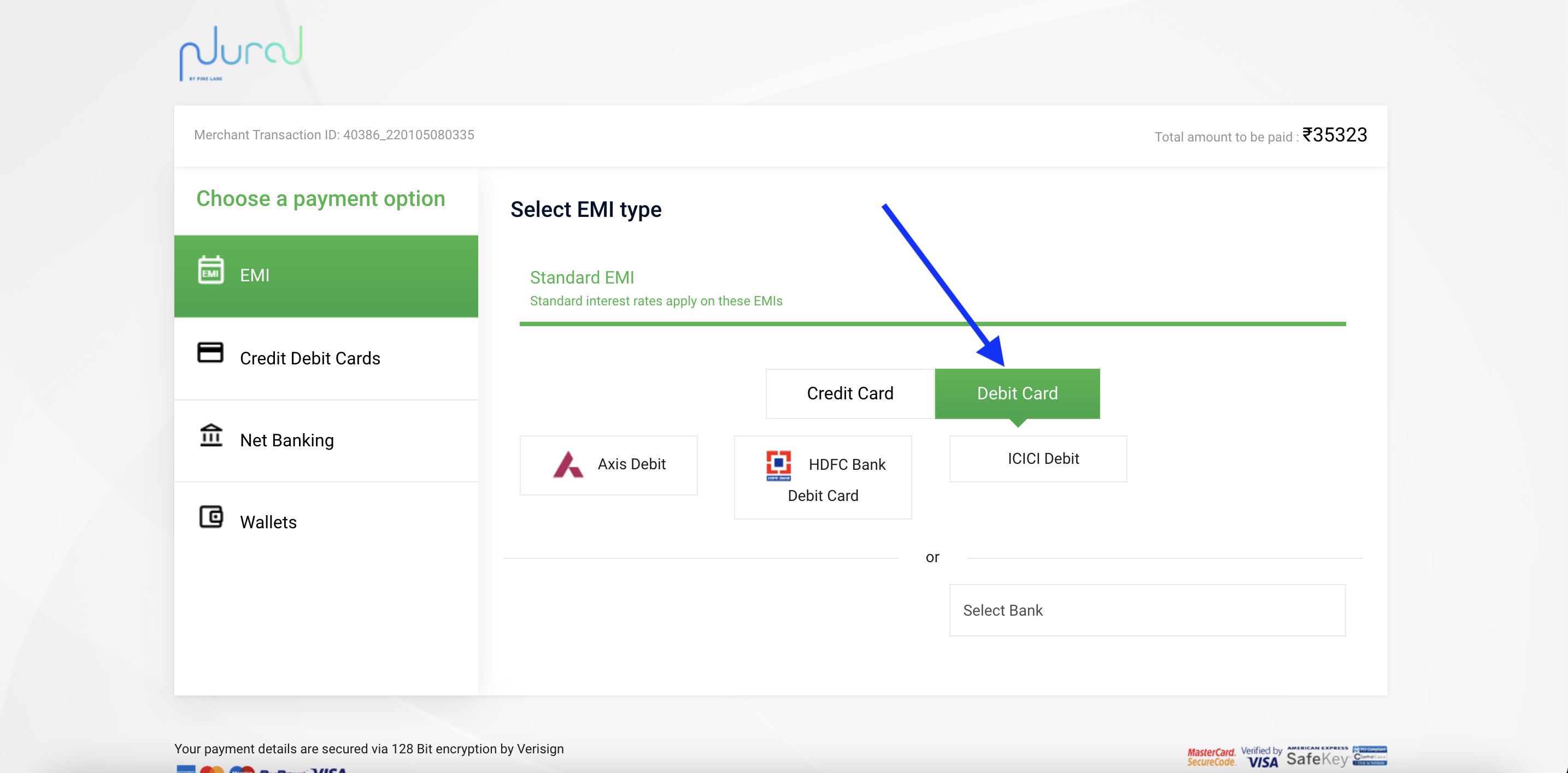 Select Debit Card under EMI