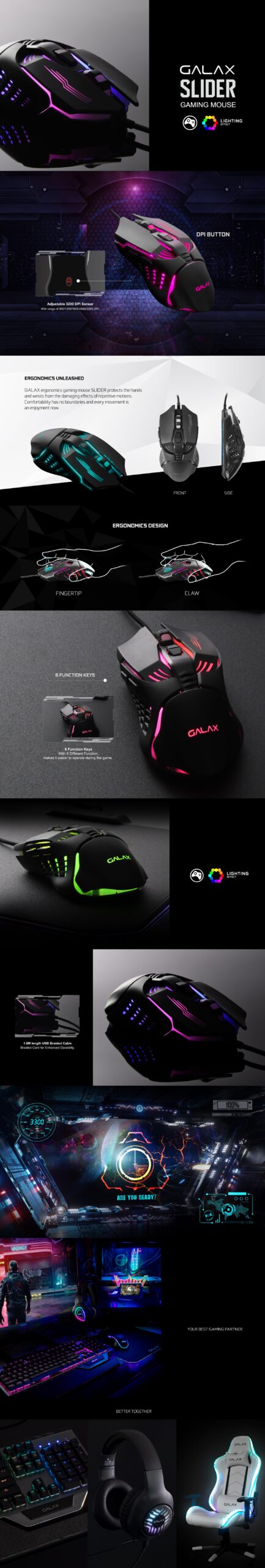 Galax Slider 02 (SLD-02) Gaming Mouse SLIDER protects the hands and wrists from the damaging effects of repetitive motions. Comfortability has no boundaries and every movement is an enjoyment now.