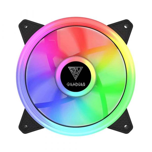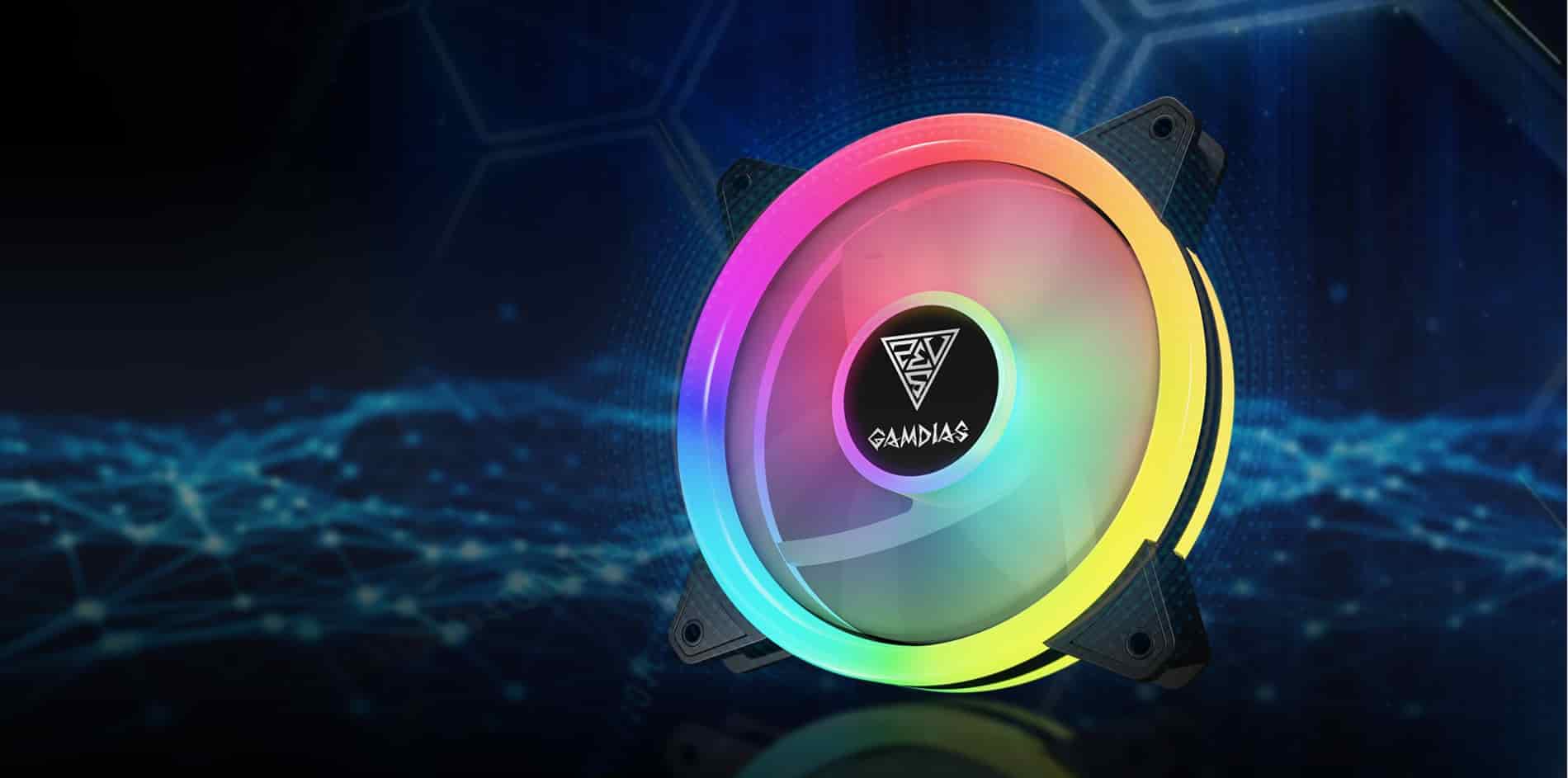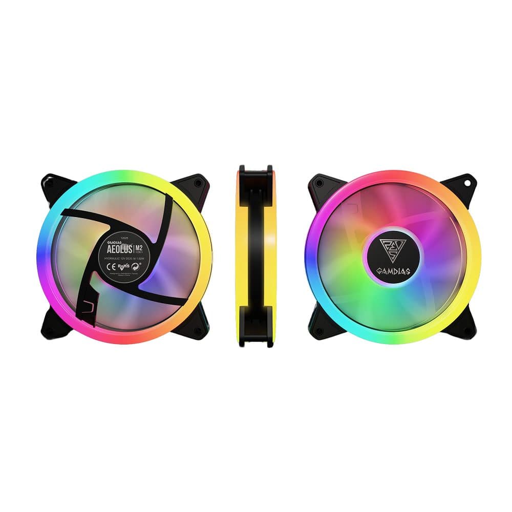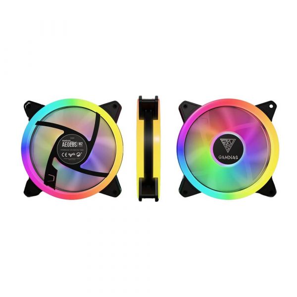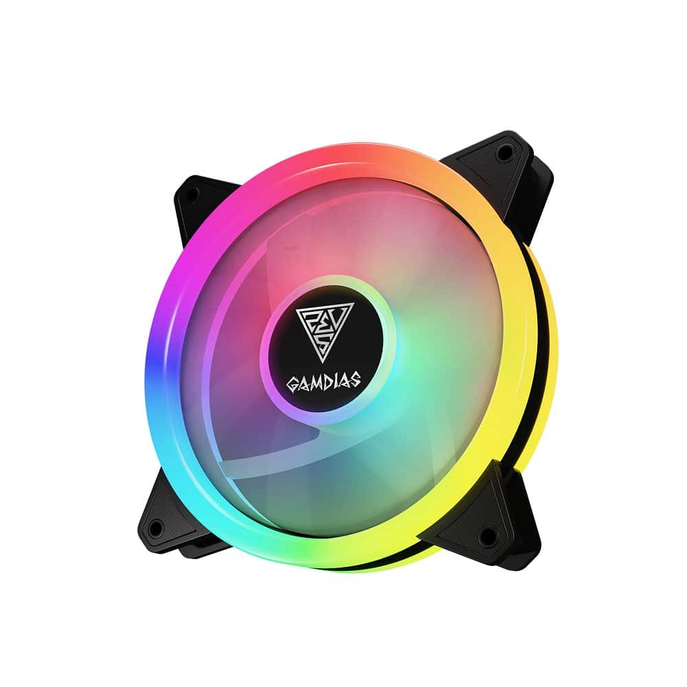 Gamdias AEOLUS M2-1201 Black 120mm Case Fan takes a Trio-loop design with three fully addressable RGB lighting rings around the front, back, and center of the fan.