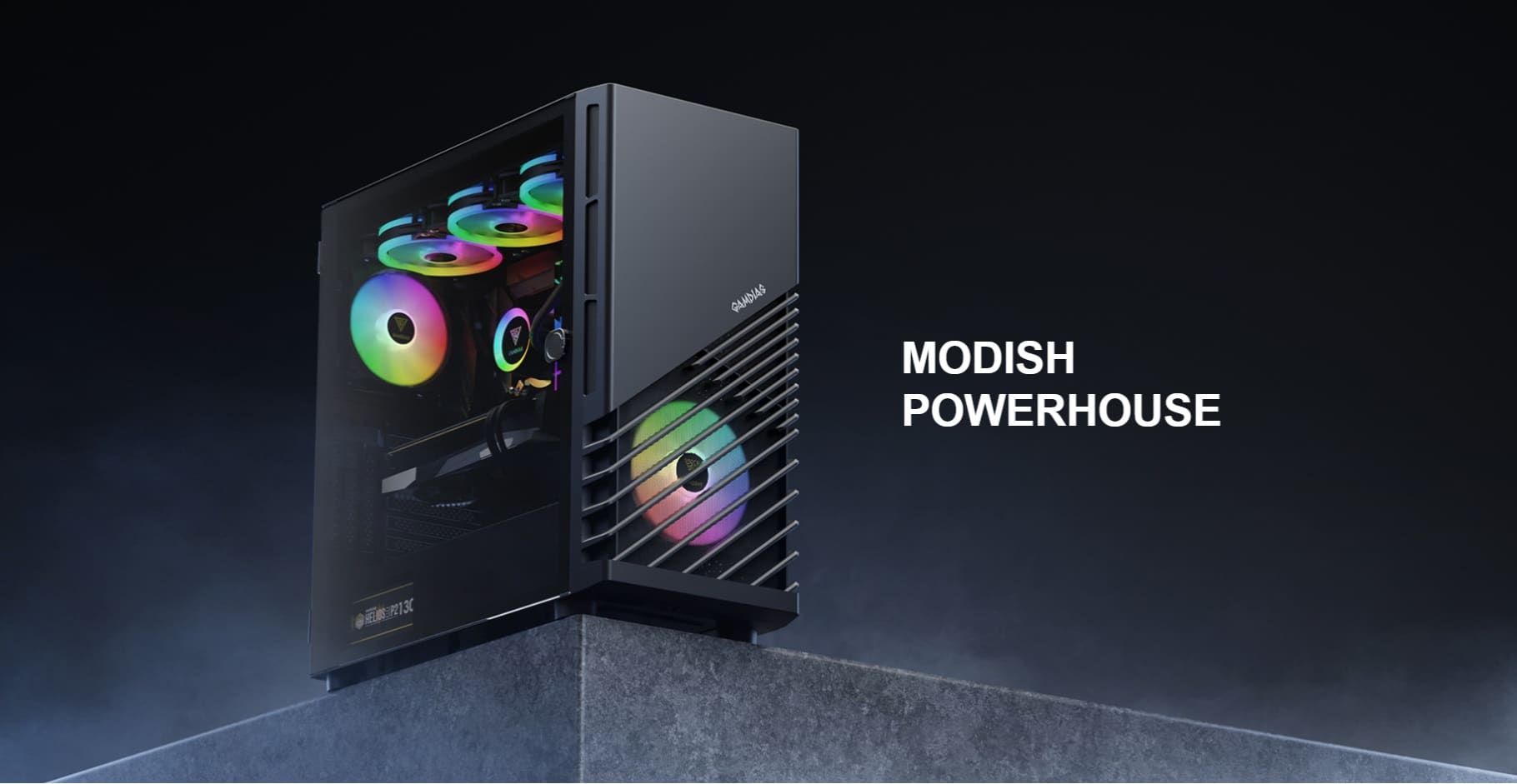 The Gamdias ARGUS M4 Gaming Cabinet is a stylish mid-tower case featuring a diagonally striped perforated front panel, two built-in ARGB fans, a tempered glass swing door, and a spacious interior for extensive cooling support to provide great performance and aesthetics.