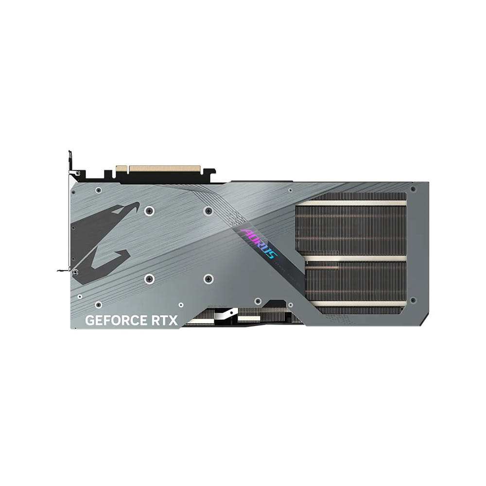 The metal back plate not only provides an aesthetical shape, but also enhances the structure of the graphics card to provide complete protection in Gigabyte Aorus RTX 4080 Super Master.