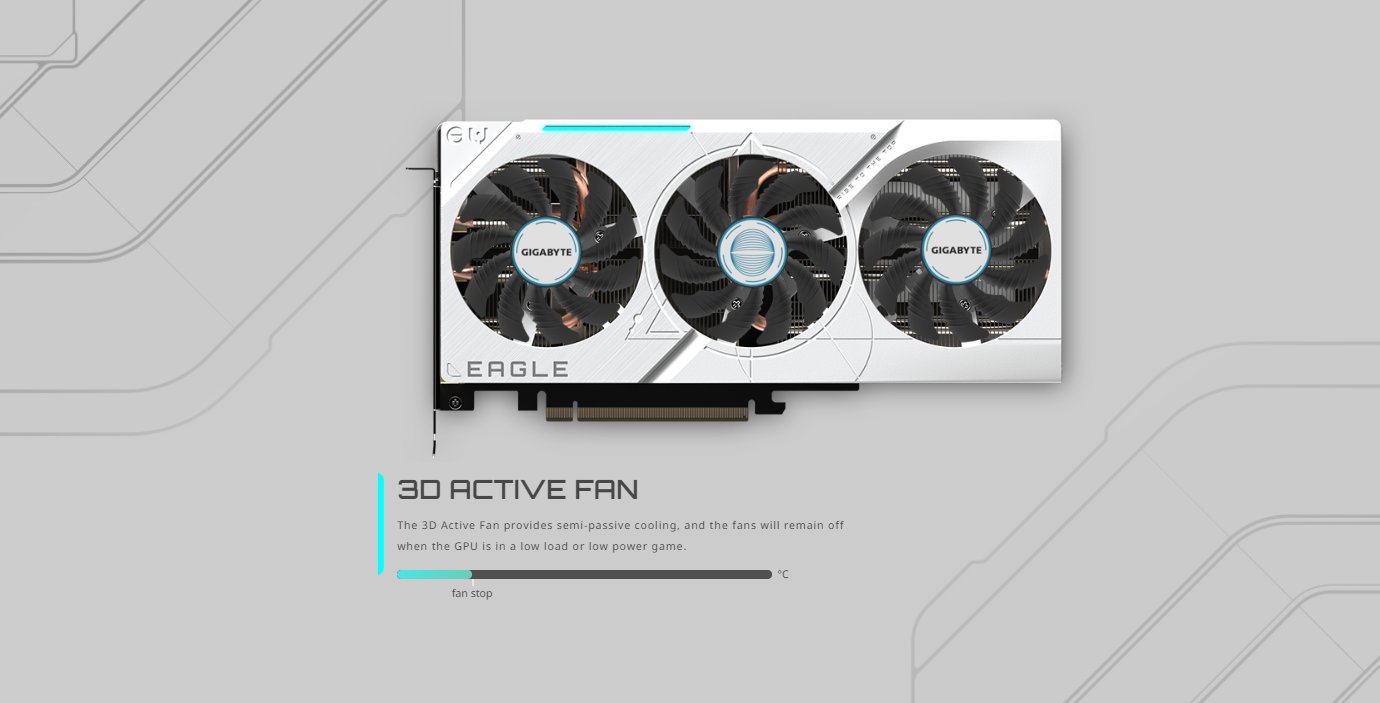 The 3D Active Fan provides semi-passive cooling, and the fans will remain off when the GPU is in a low load or low power game.