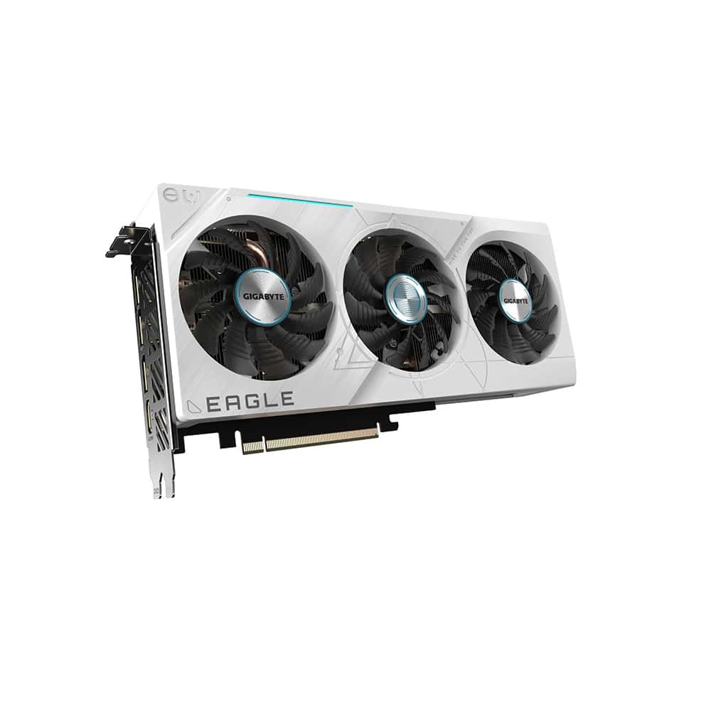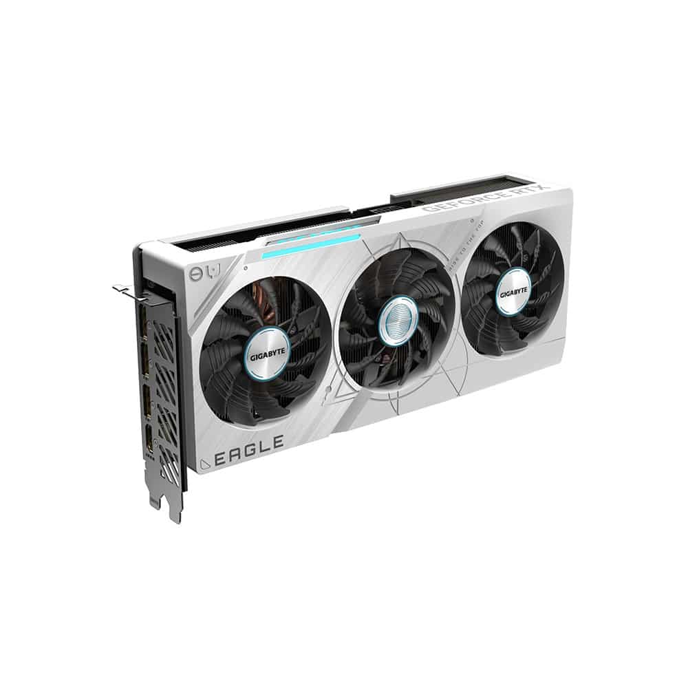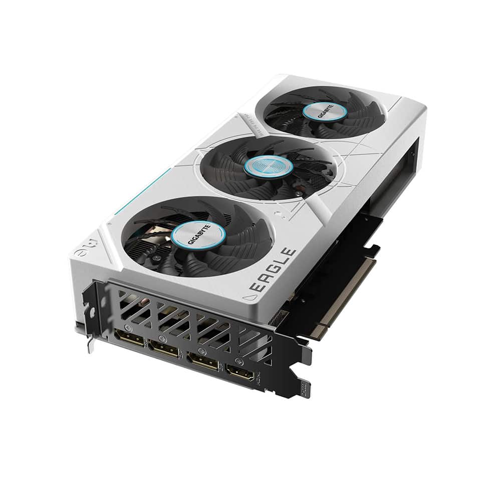 The WINDFORCE cooling system features three 90mm unique blade fans, alternate spinning, 8 composite copper heat pipes, a copper plate directly touches the GPU, 3D active fans and Screen cooling, which together provide high efficiency heat dissipation.All with Gigabyte RTX 4070 Super Eagle OC ICE.