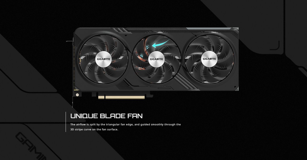 The airflow is spilt by the triangular fan edge, and guided smoothly through the 3D stripe curve on the fan surface.All with Gigabyte RTX 4070 Ti Super Gaming OC 16GB.