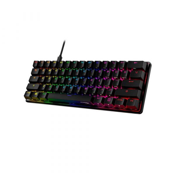 The HyperX Alloy Origins 60 Percent HX Aqua Switch Mechanical Keyboard is a supremely portable 60% form factor keyboard that gives you more room for sweeping mouse movements. It features a durable, full aluminum body, and reliable HyperX switches balanced for speed and performance which are rated to withstand 80 million keypresses. The stock double shot PBT keycaps have secondary functions printed on them so you can quickly locate additional functionality. Let your style shine bright with the HyperX switches’ exposed LED design, and stunning lighting effects. Further customize your HyperX Alloy Origins 60 Percent HX Aqua Switch Mechanical Keyboard with macros, personalized lighting profiles, and more with HyperX NGENUITY software.