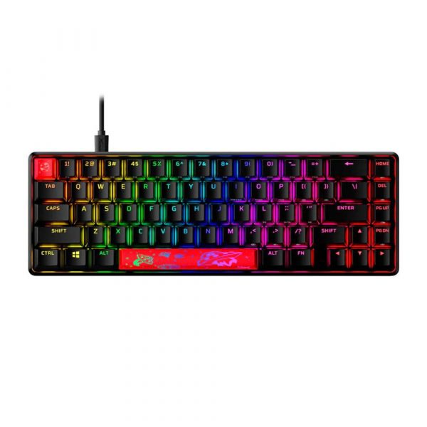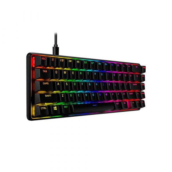The HyperX Alloy Origins 65 Percent HX Red Switch Mechanical Gaming Keyboard is a balanced keyboard which blends compactness and functionality, but compromises nothing. A 65% form factor makes it more compact than a tenkeyless keyboard, while still offering arrow keys. With a durable, full aluminum body, and balanced HyperX switches rated to withstand 80 million keypresses, it’s as reliable as it is compact. The stock double shot PBT keycaps have the keys’ secondary functions printed on them so you can quickly locate any additional functionality you need. Let your style shine bright with the HyperX switches’ exposed LED design, and stunning lighting effects. Further customize your HyperX Alloy Origins 65 Percent HX Red Switch Mechanical Gaming Keyboard with macros, personalized lighting profiles, and more with HyperX NGENUITY software.