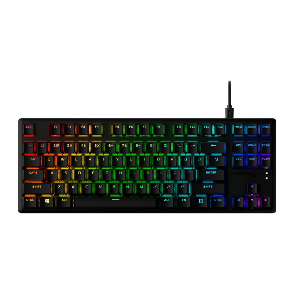 The HyperX Alloy Origins Core PBT HX Aqua is an ultra-compact, sturdy tenkeyless keyboard featuring custom HyperX mechanical switches designed to give gamers the best blend of style, performance, and reliability. This variant ups durability by adding pre-installed PBT keycaps with side-printing. HyperX’s mechanical key switches are built with exposed LEDs so more of the light output is visible, providing more brilliant, stunning lighting. They’re also tuned with an actuation force and travel distance that is elegantly balanced for responsiveness and accuracy. HyperX Alloy Origins Core PBT HX Aqua is built with a full aluminum body, so it stays rigid and stable, and also features keyboard feet for three different tilt levels. Its compact TKL design creates space for mouse movement in desktop setups where space is at a premium, and it also features a detachable USB-C cable for portability. Customize your lighting, craft macros, and adjust Game Mode with powerful, easy-to-use HyperX NGENUITY Software.