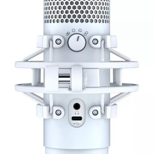 Isolate the mic and suppress the sound of unintentional rumbles and bumps with the elastic rope suspension with HyperX QuadCast S RGB White.