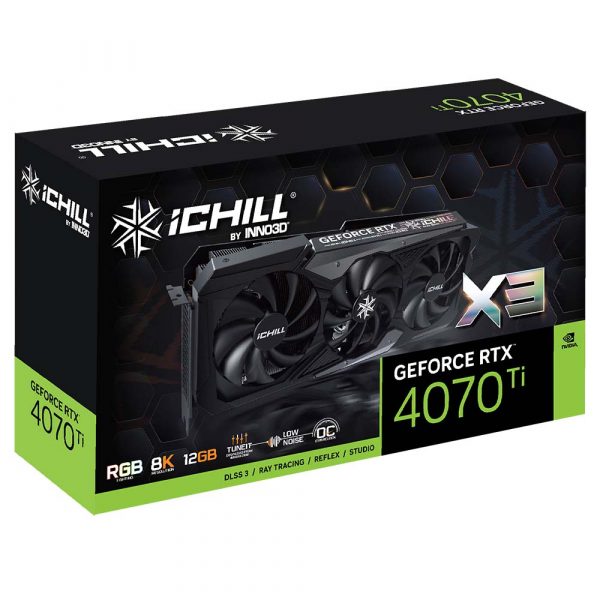 Inno3d RTX 4070 Ti iCHILL X3 12GB GPU isbeyond fast for gamers and creators. They’re powered by the ultra-efficient NVIDIA Ada Lovelace architecture which delivers a quantum leap in both performance and Al-powered graphics. Experience lifelike virtual worlds with ray tracing and ultra-high FPS gaming with the lowest latency. Discover revolutionary new ways to create and unprecedented workflow acceleration.