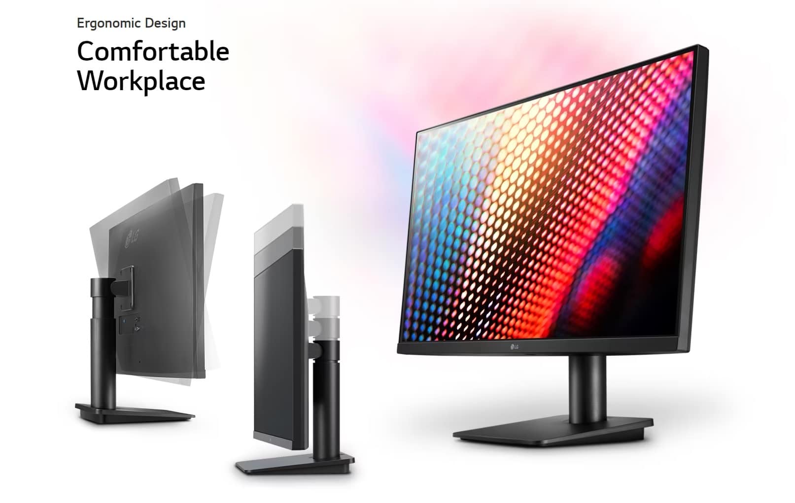 LG 27MP450-B has slim bezel on three sides and doesn’t interfere with dazzling precision, which allows you to create an optimized work environment through convenient tilt and height adjustments.