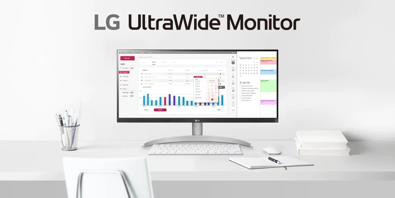 LG 29WQ600-W 29 Inch Ultrawide FHD IPS Monitor streamlined display features a slim bezel on three sides and no distractions from the dazzlingly precise, lifelike image while two 7W Stereo Speakers with MaxxAudio® completes your immersive experience.