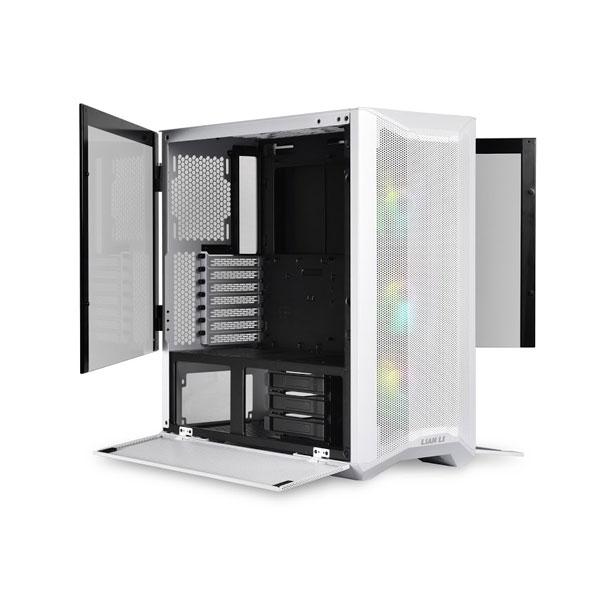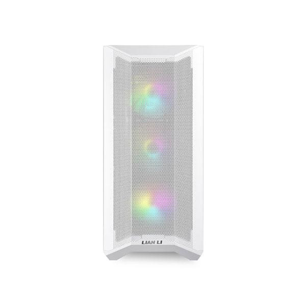 Lian Li Lancool II Mesh White ARGB features a mesh front panel and mesh bottom left shroud panel,honeycomb vent design and built-in RGB fans,ensuring bountiful airflow delivered to your high-performance components while adorning the system with an RGB touch.
