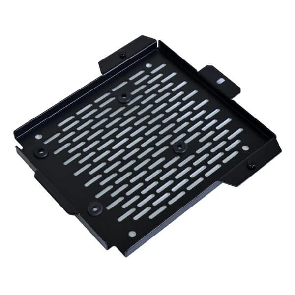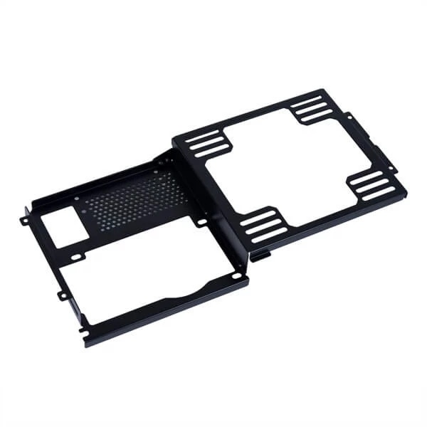 - Mini-ITX motherboard support with slit at top of motherboard tray to pass PCIE cable
