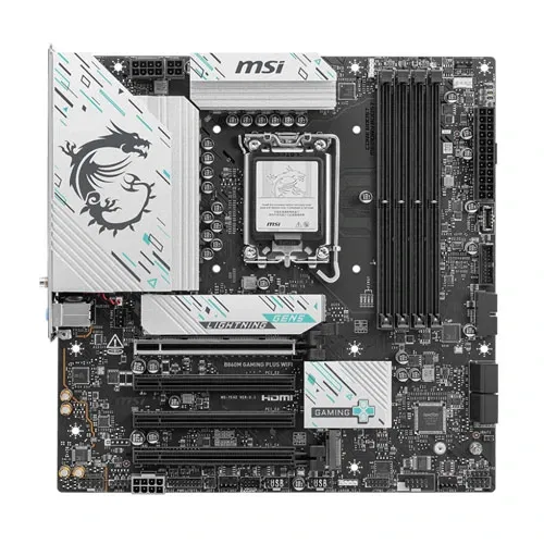 The MSI B860M Gaming Plus WiFi is a powerful micro-ATX motherboard built on Intel’s B860 chipset for the LGA 1851 socket. MSI B860M Gaming Plus WiFi Crafted for gamers and performance users, it supports Intel Core Ultra (Series 2) CPUs and delivers top-tier features like DDR5 up to 8800+ MT/s, PCIe 5.0 x16, triple M.2 slots (including Gen5), Wi‑Fi 7 + Bluetooth 5.4, Intel Killer 5G LAN, Thunderbolt 4, and advanced Frozr cooling—making it an ideal foundation for compact gaming and creator builds.