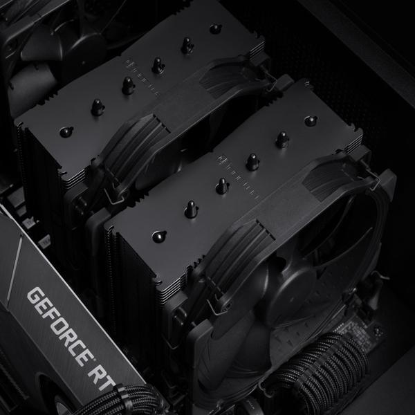 Noctua NH-D15 Chromax Black Noctua NH-D15 Chromax Black The NH-D15 chromax.black is an all-black version of Noctua’s award-winning flagship model NH-D15 premium-quality quiet CPU cooler. Thanks to the same proven dual-tower heatsink design and NF-A15 PWM fans, it stays true to the NH-D15’s successful formula of rivalling the performance of all-in-one water coolers while maintaining superb quietness of operation. At the same time, the chromax.black version with its black fans and black coated heatsink combines these assets with a sleek stealth look. Topped off with the renowned SecuFirm2™ multi-socket mounting system, Noctua’s enthusiast-grade NT-H1 thermal compound and a full 6-year manufacturer’s warranty, the NH-D15 chromax.black is a deluxe choice for both overclockers and silent enthusiasts who seek an elite-class heatsink that looks just as great as it cools.