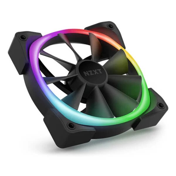NZXT Aer RGB 2 Black Integrating seamlessly into the HUE 2 ecosystem, Aer RGB 2 fans deliver optimal airflow and advanced lighting customizations. Connect up to five fans per channel or mix-and-match with any HUE 2 accessory* in any channel and synchronize them using CAM for amazing lighting effects that work in perfect harmony. With fluid dynamic bearings and winglet tips, Aer RGB 2 fans offer enhanced cooling while minimizing noise.