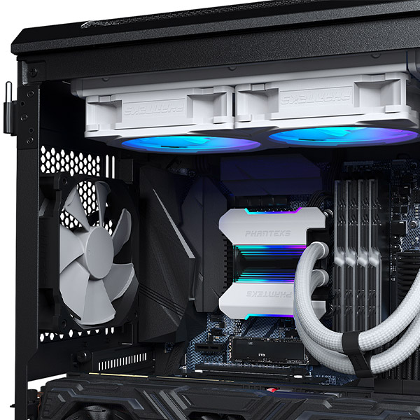 The new Phanteks Glacier One all-in-one liquid CPU coolers are capable of cooling powerful CPUs while operating silently. The included 120/140 MP PWM fans offer high airflow, low noise, and excellent cooling performance with its pressure optimized fan blades. Installation is a breeze thanks to the pre-filled all-in-one solution, flexible braided tubing and tube clips that help route tubing and fan cables for a clean PC interior.