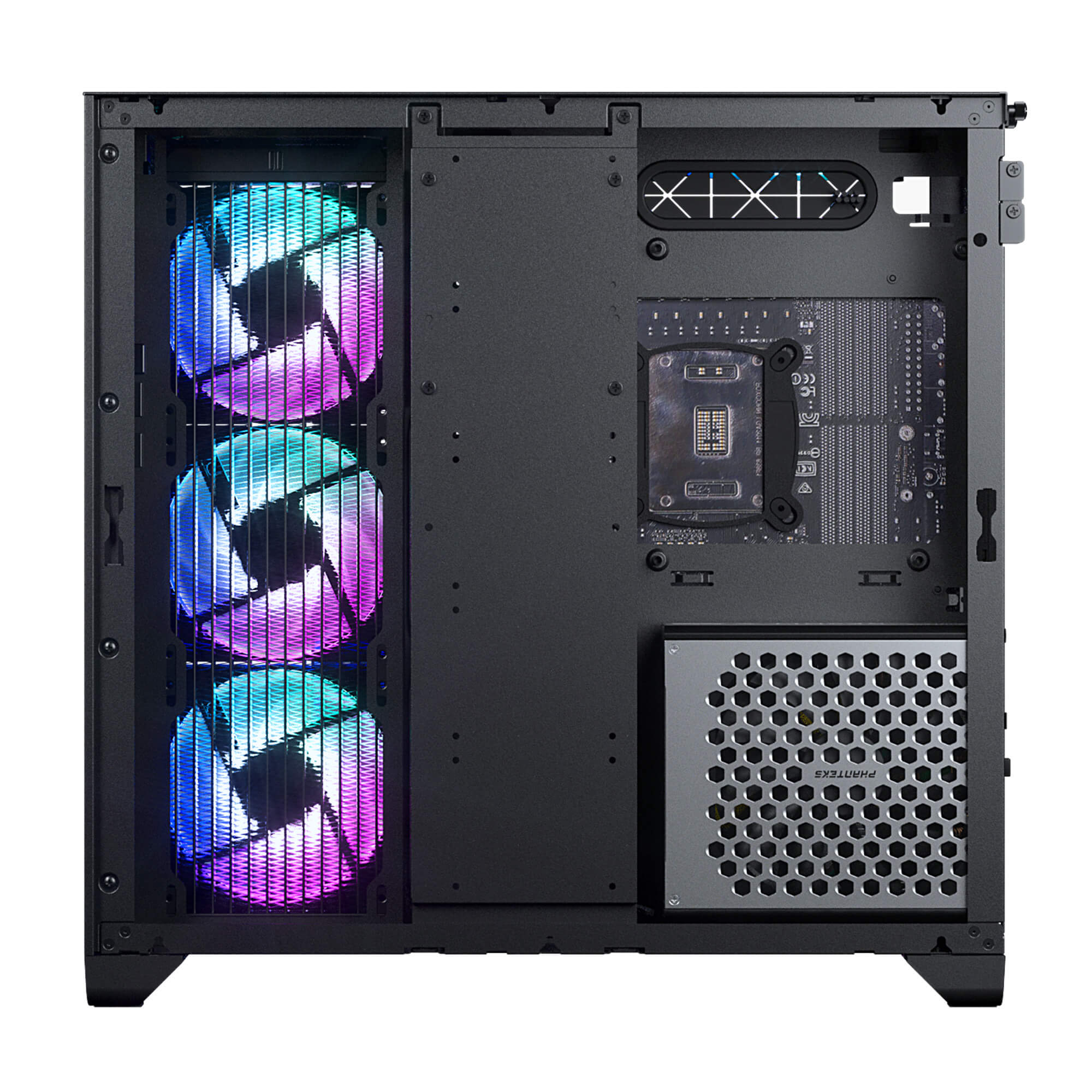 The Phanteks Metallic Gear Neo Qube 2 Black from Magnium Gear is a true showcase mid-tower chassis without compromise. Its dual chamber design makes installation and cable management a breeze while all system components are highlighted through the double tempered glass panels. What sets the NEO Qube 2 apart is it’s infinity mirror coating on the front glass panel and built-in lighting effects. This changes the tempered glass front panel to an endless Digital-RGB view like no other, yet you will have a good view of the systems components through the side glass panel.