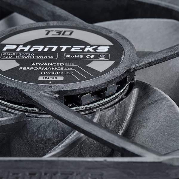 The Phanteks T30-120 fan has undergone years of development and extensive testing in close collaboration with SUNON, a leading fan manufacturer. Combined with Phanteks’ expertise in chassis and air/water cooler design, we created the ultimate PC cooling fan. The T30-120 features the best aerodynamic blade design, 30mm thick frame, and is made from quality industrial-grade components to achieve a perfect balance between high cooling performance, low noise operation, and excellent sound quality.