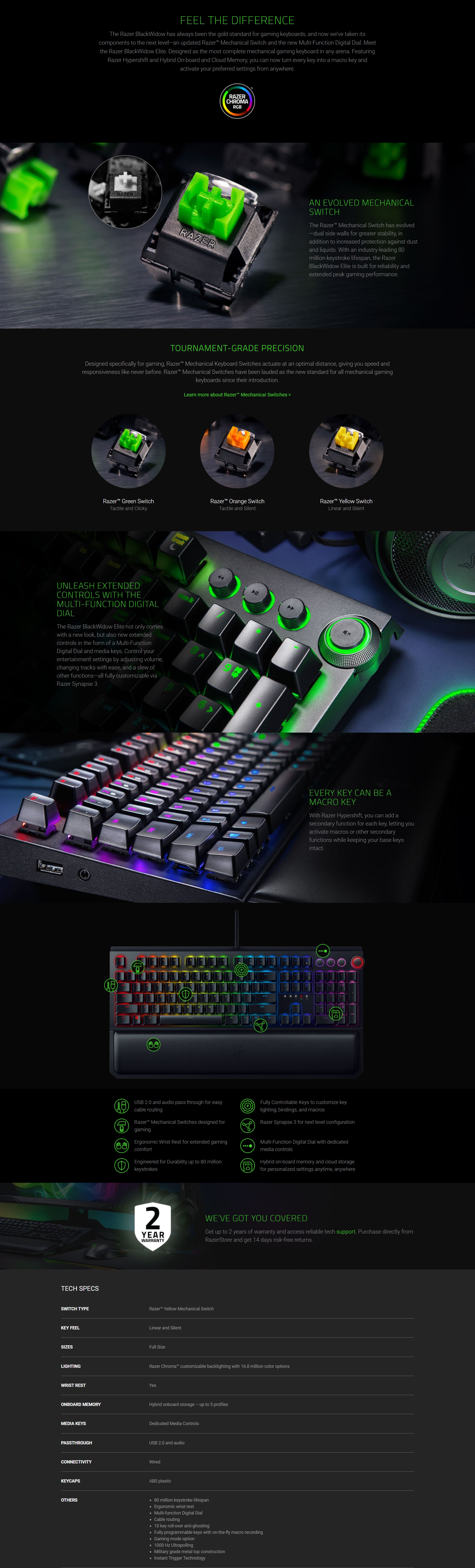 Razer BlackWidow Elite Mechanical Gaming Keyboard - Yellow Switch