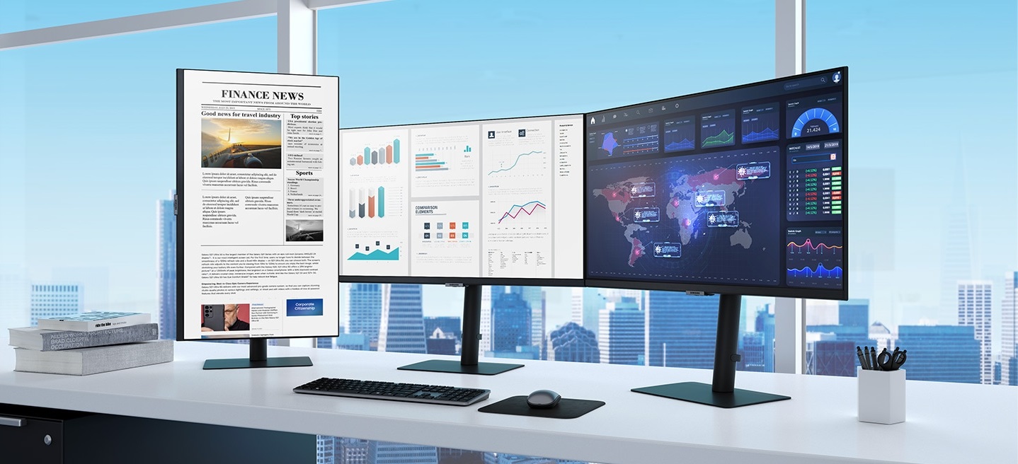 Position your monitor for optimal comfort. Samsung LS24A600U Comes with Borderless design, VESA mount compatibility and a variety of tilt, swivel and pivot control points allow you to mount your monitor in any environment. In addition, a slim metal stand and narrow depth take up less desk space for a clean, seamless work setup.