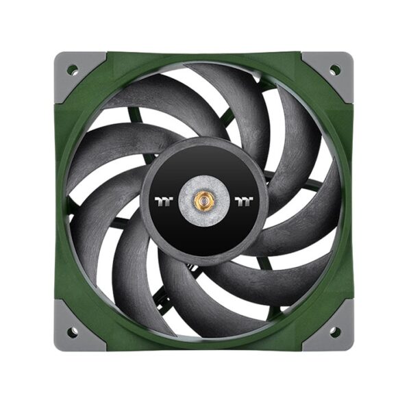 Thermaltake Toughfan 12 Racing Green Featuring high tensile strength and low thermal expansion coefficient materials, mixed with a charcoal black metal reflection paint that matches the Racing Green color; the fan blade is built with special liquid crystal polymer (LCP), a compound which minimizes vibration when the fan is operating at full speed.