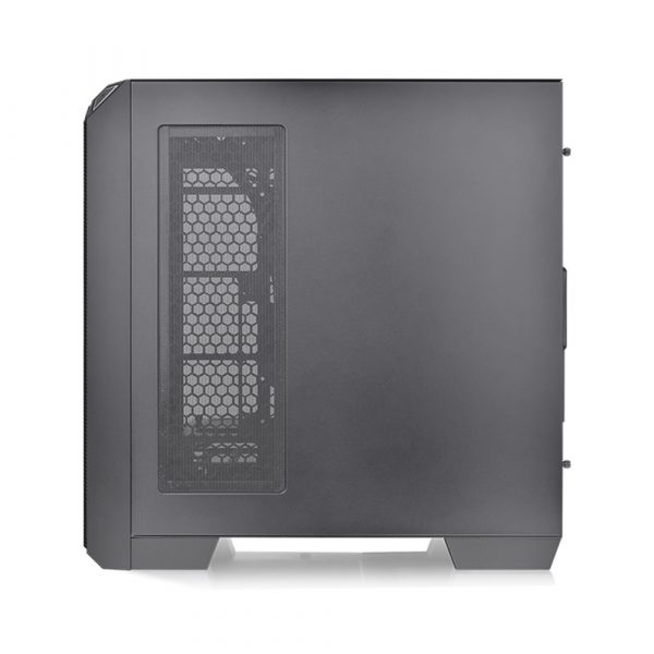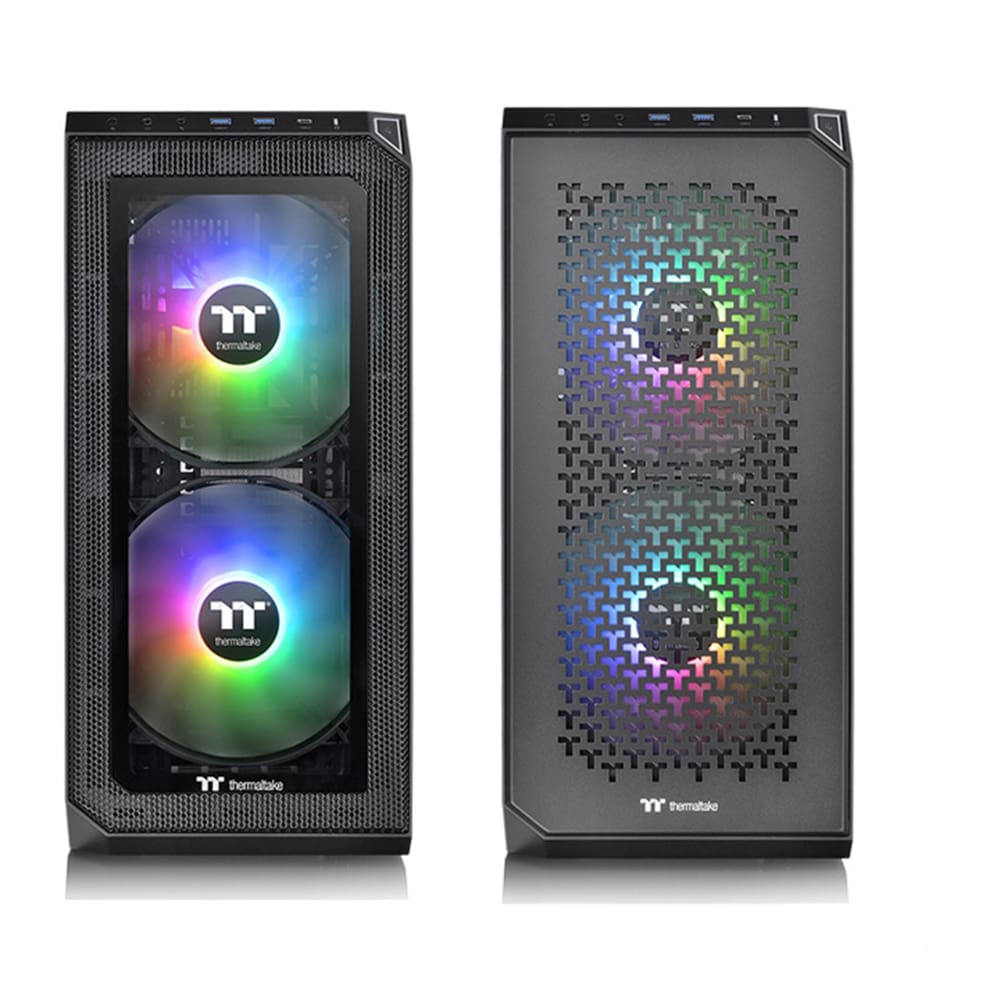 There are two front panels that come in the box: one tempered glass mesh panel for an outstanding look, and the other is a perforated steel panel with TT logo cutouts for better airflow. Two styles for users to choose, display your PC build the way you want.