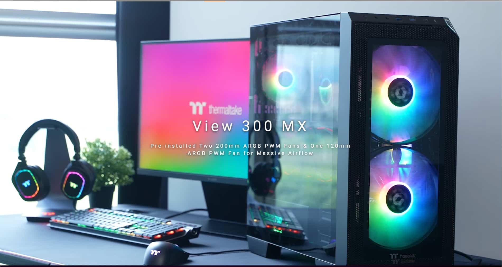 The cooling performance of the Thermaltake View 300 MX Black Gaming Cabinet is fabulous thanks to two 200mm ARGB PWM fans and one 120mm ARGB PWM fan pre-installed. The Perforated TT logo Steel Panel allows optimal air intake, while the tempered glass mesh panel also provides sufficient air-intake through its mesh edge.
